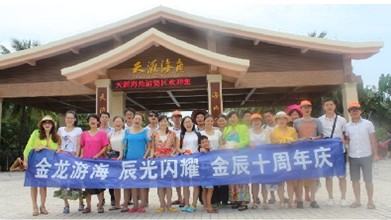 2013年9月18日-22日,金辰軟件有限公司組織員工開展“金龍游海辰光閃耀”海南雙飛五日游,第二天時值中秋和金辰公司成立10周年紀念,公司員工及家屬一行將近30人在海南度過了一個難忘的中秋。