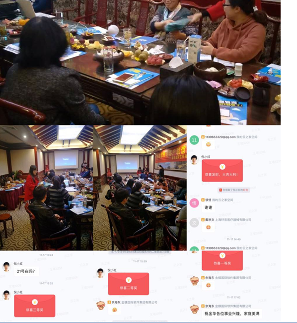 兩點四十,小伙伴們都到的差不多啦,金辰軟件的副總經理倪小紅開場給大家做了活動說明,強調活動的意義,同時感謝客戶的積極參與,接下來由金蝶國際軟件集團有限公司溫州金華的云之家分銷管理經理周泠周老師介紹了一下云之家,還有金蝶國際軟件集團有限公司溫州金華片區(qū)的總監(jiān)余海東余老師介紹了云之家基于kis產品的請應用,最后由金辰kis事業(yè)部的徐春蓮介紹了KIS云專業(yè)版15.0的新增功能。在此期間穿插了有獎問答和抽獎的環(huán)節(jié)。