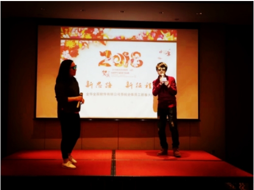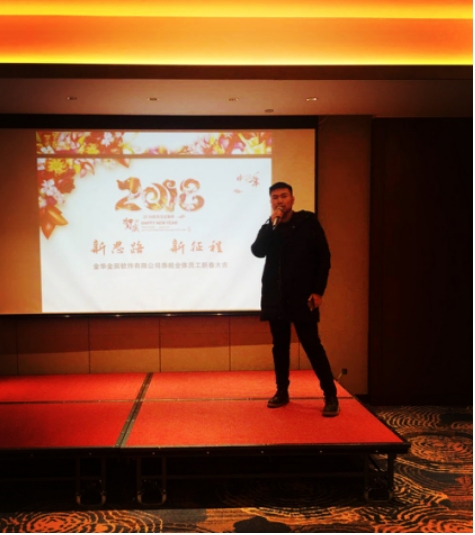 2018年2月8日,會場設(shè)在金華原素酒店2樓,公司40多人參加年會。會上,總經(jīng)理李劍忠先生圍繞“新思路 新征程”作了主題講話,解讀金辰公司的發(fā)展、現(xiàn)狀和未來,給全體員工帶來力量和信心,同時公司副總李家駒先生與倪小紅女士也對2017年所取得的成績、獲得的成功做了詳盡的總結(jié),并對交付與服務(wù)進(jìn)行了開拓性的展望。