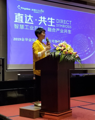 首先由金華金辰軟件有限公司副總經理 倪小紅女士致辭,倪總回顧了金蝶的發(fā)展之路,并展望了未來的全新趨勢,表達了對到場所有客戶的感謝之情,也對金華金辰的發(fā)展指明了方向。