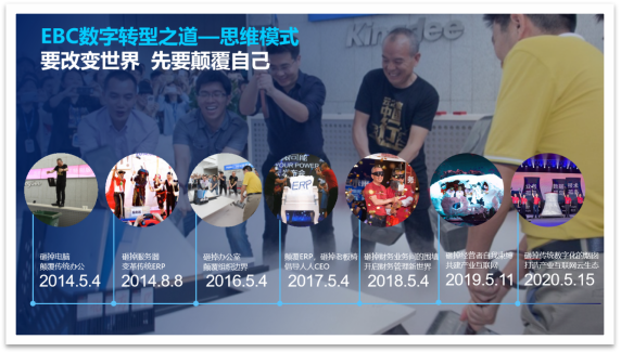 活動一開始,由金華金辰軟件有限公司副總經(jīng)理倪小紅女士開場致辭。倪總通過一張圖展示了金蝶從14年開始的轉型史,講述了金蝶公司從總裁開始自上而下的顛覆決心。
