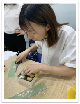 培訓內(nèi)容結束后,我們精心為客戶準備了手工制作綠豆糕的活動。從原料的購買,加工,翻炒,成型以及包裝,都匯聚了我們對客戶的感恩,為客戶帶去一份美好的體驗。但是稍有遺憾的是中間翻炒時間有點久,一部分客戶沒有繼續(xù)等待就先離開了,沒有品嘗到手工制作的綠豆糕。