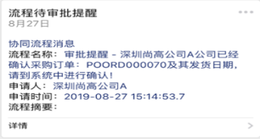啟用采購協(xié)同管理的供應(yīng)商通過微信接收到同步的采購訂單信息后,對所屬的采購訂單確認后進行發(fā)貨。全程高效協(xié)同,實現(xiàn)有計劃的集中采購(微信端接收信息與處理)。