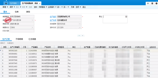 通過生產發(fā)料單選單的方式對生產訂單的周計劃(可不限于周計劃)排單以及領料控制,將線下的排單過程轉移到線上,并可以根據周計劃進行領料控制,針對生產發(fā)料的二次開發(fā),增加了領料倉庫的修改及零庫存物料的領料單生成,增加了軟件操作的靈活性,更便于員工操作。