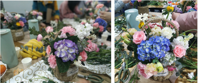 每一位女神都沉浸在自己的花藝世界,她們的認(rèn)真勁兒一點也不輸給專業(yè)花藝師?;顒有路f而有趣,現(xiàn)場的氛圍融洽而歡樂。在一片花海中,參加活動的每位女神臉上都洋溢著滿足和喜悅的笑容,沉浸在其樂融融的氣氛里。