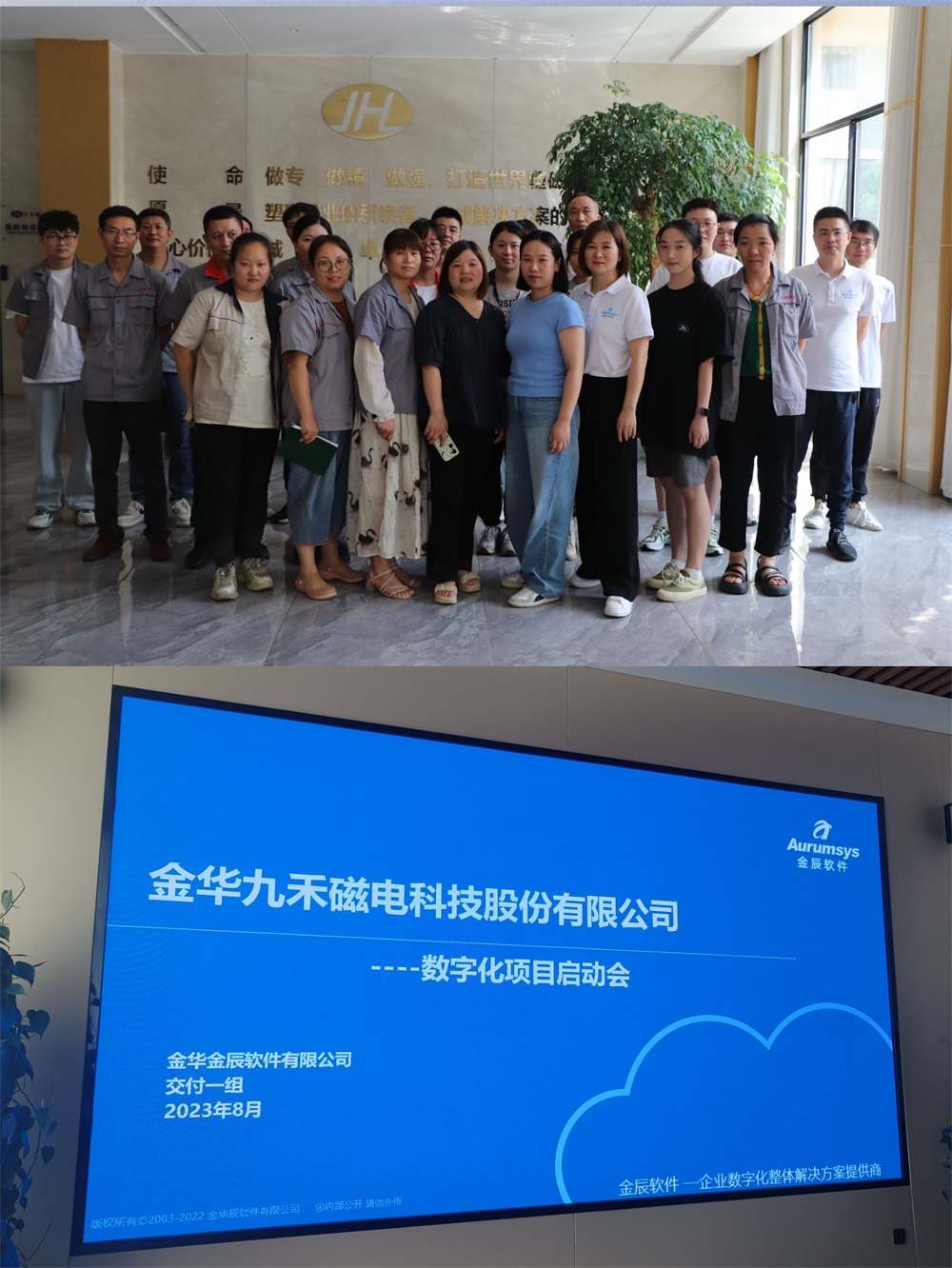 2023 年 8 月16 日,金華金辰軟件有限公司(以下簡稱金辰軟件)與金華九禾磁電科技股份有限公司(以下簡稱九禾磁電)共同舉辦的數(shù)字化啟動會在金華磐安圓滿完成。這次會議標(biāo)志著九禾磁電數(shù)字化轉(zhuǎn)型邁出了重要的一步,同時也展示了金辰軟件助力企業(yè)數(shù)字化升級的強大實力。